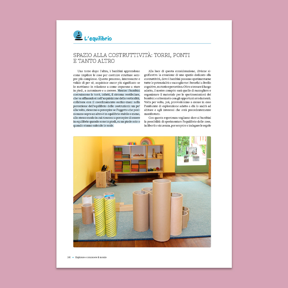 The book – aimed at nursery school educators – offers 25 experiences to explore the physical world aimed at children aged 0 to 3. Starting from small children’s natural desire to learn about the world around them, the book presents experiences based on three areas that particularly capture their attention because they offer multiple opportunities for interaction with the surrounding environment: