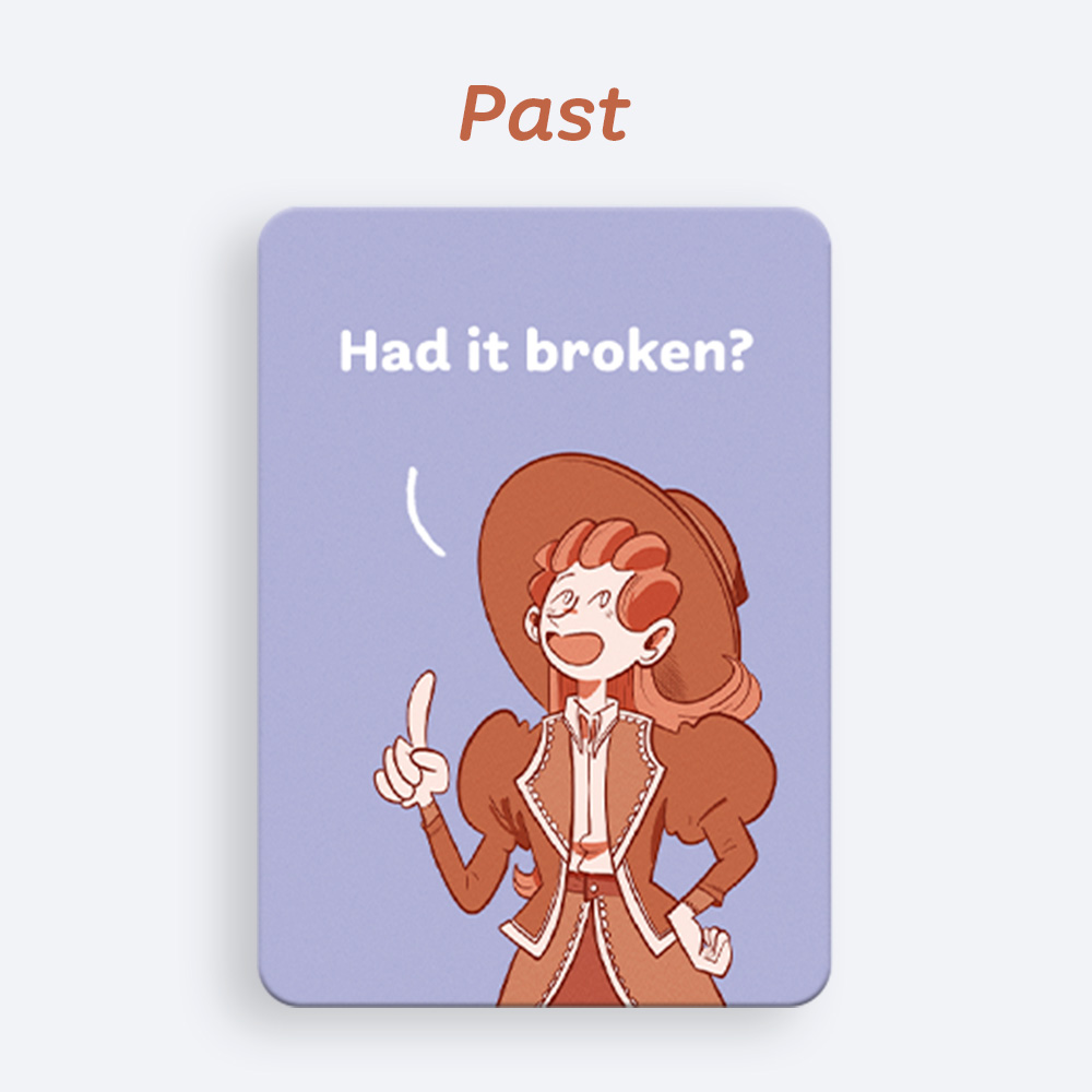 The aim of the game is to score the most points by completing a set of four cards that share the same verb tense, mood, form or modal verb.