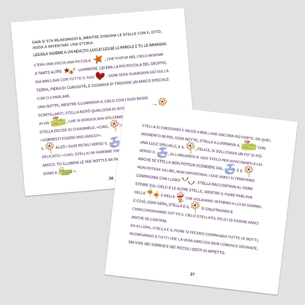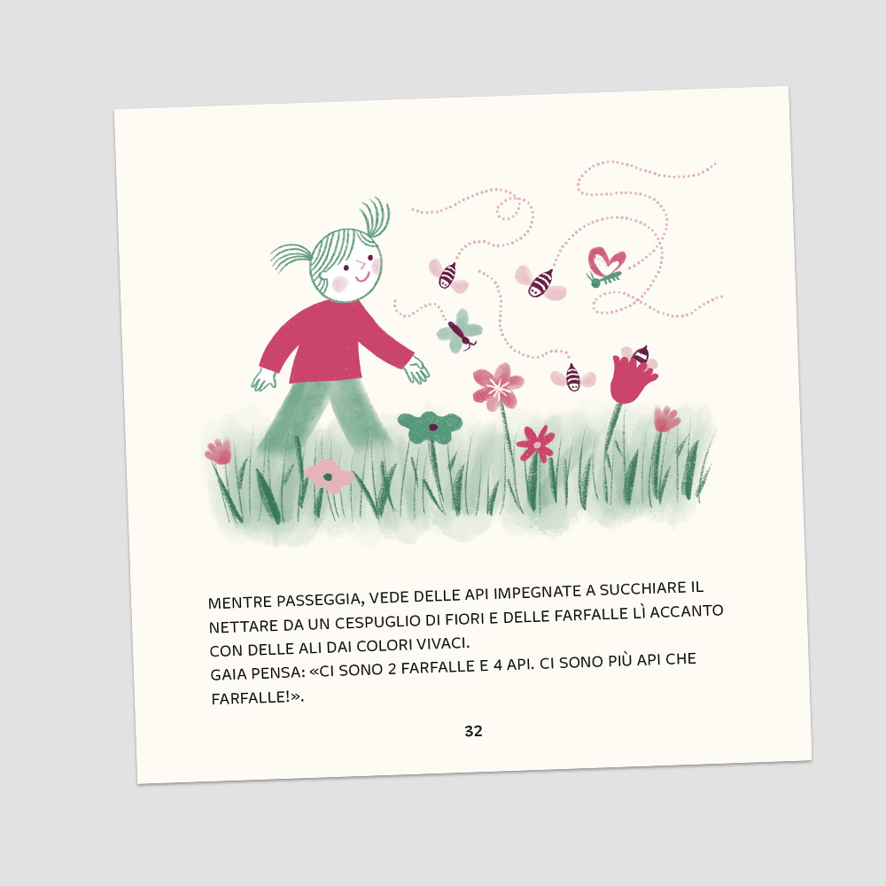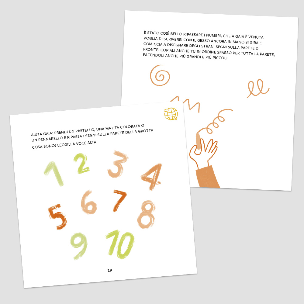 Gaia’s journey through numbers and words is an illustrated book that strengthens the key early skills needed for reading, writing and numeracy. The book alternates a narrative part – Gaia’s story – with a part of exercises that aim at facing small cognitive challenges engaging the child’s body, mind and imagination.