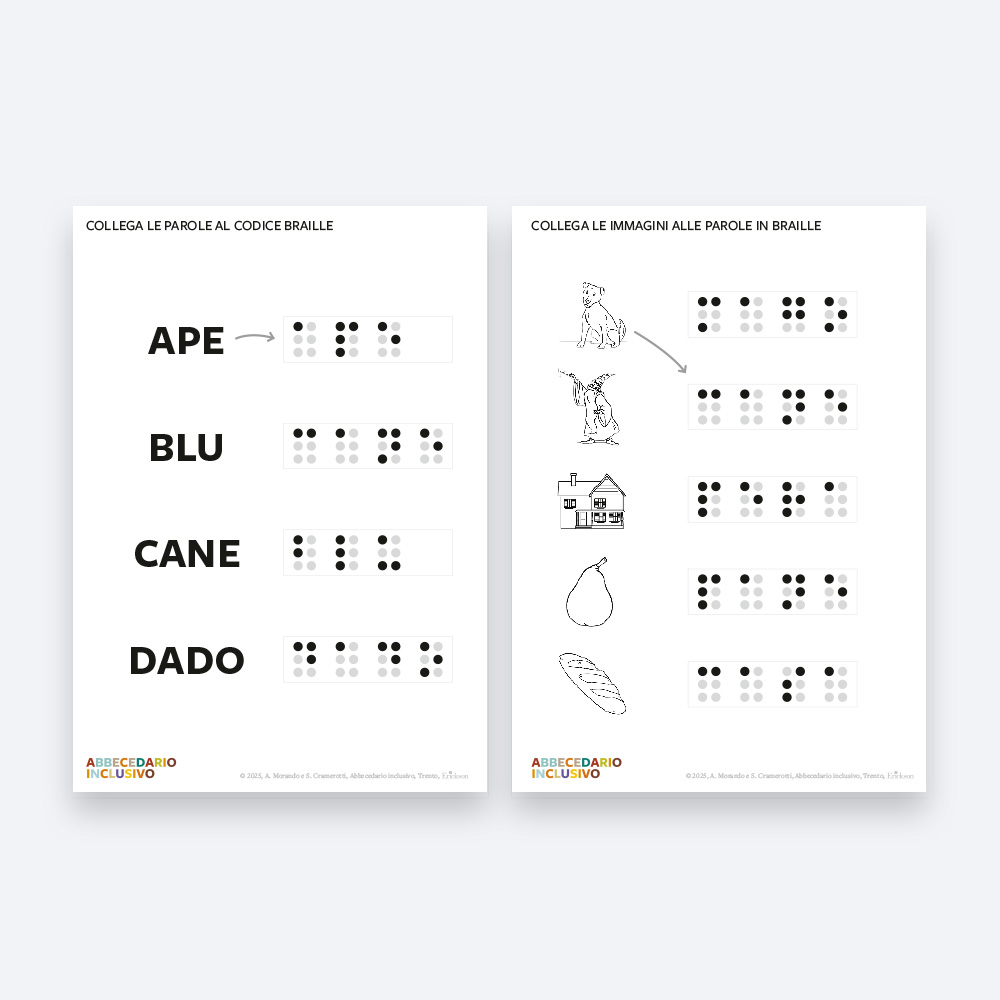 These activities first work on word–symbol association and, at a more advanced level, on matching graphic representation with Braille code.