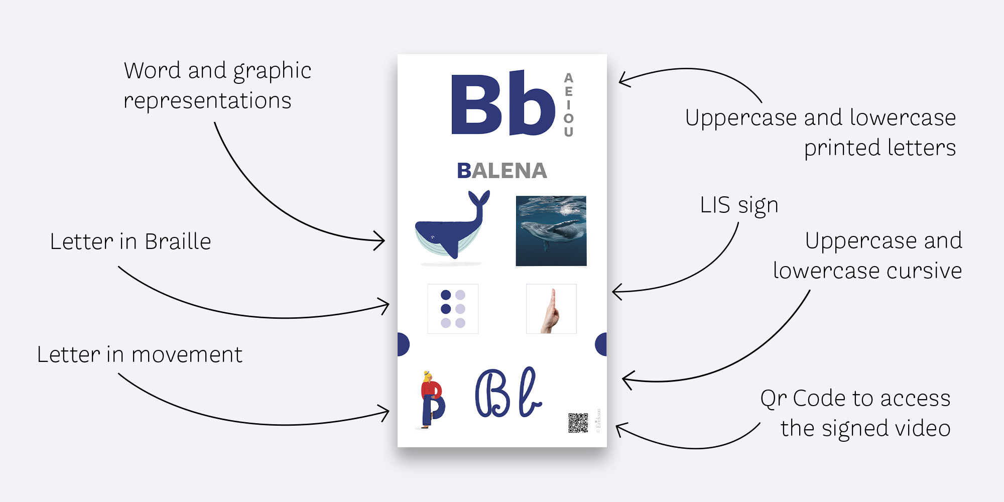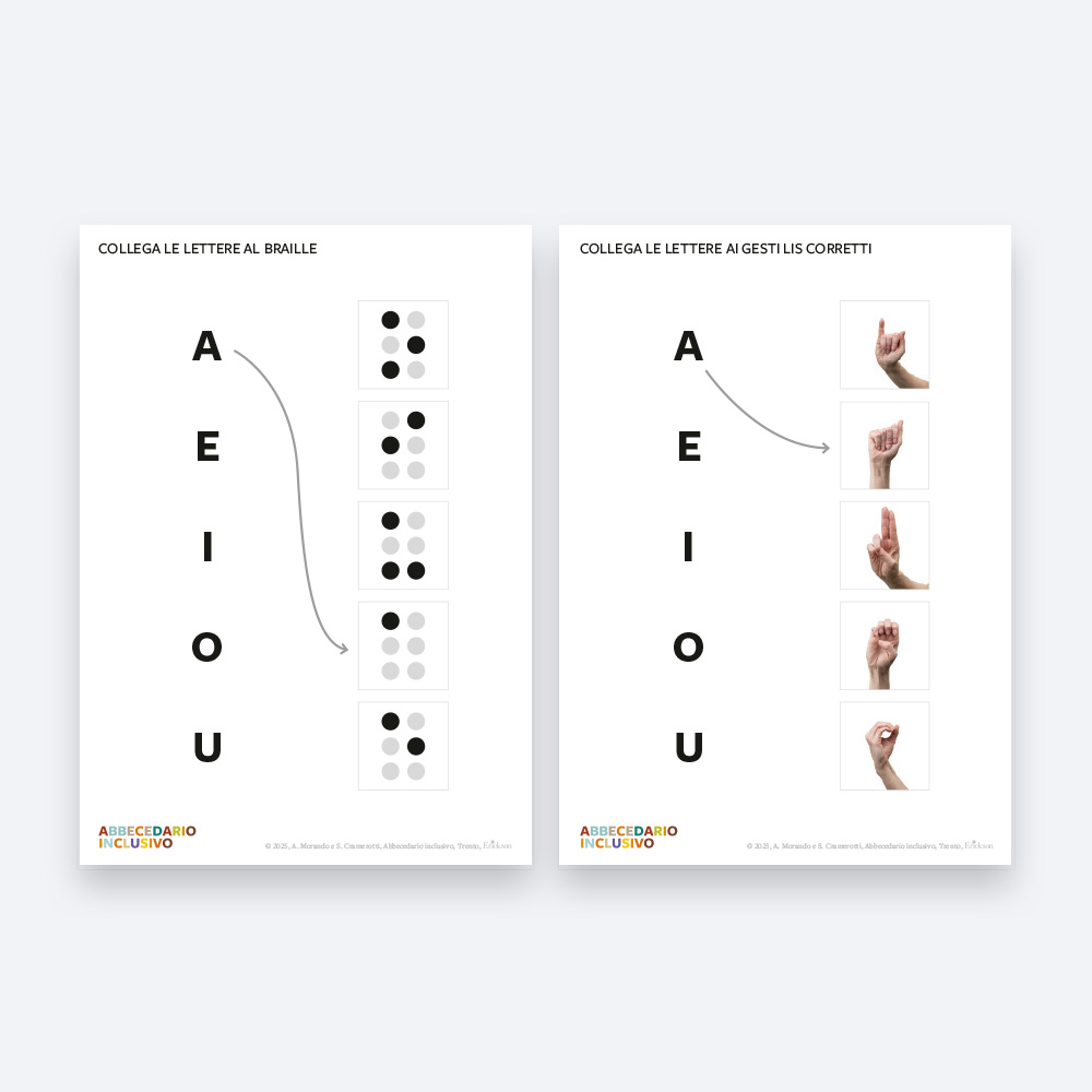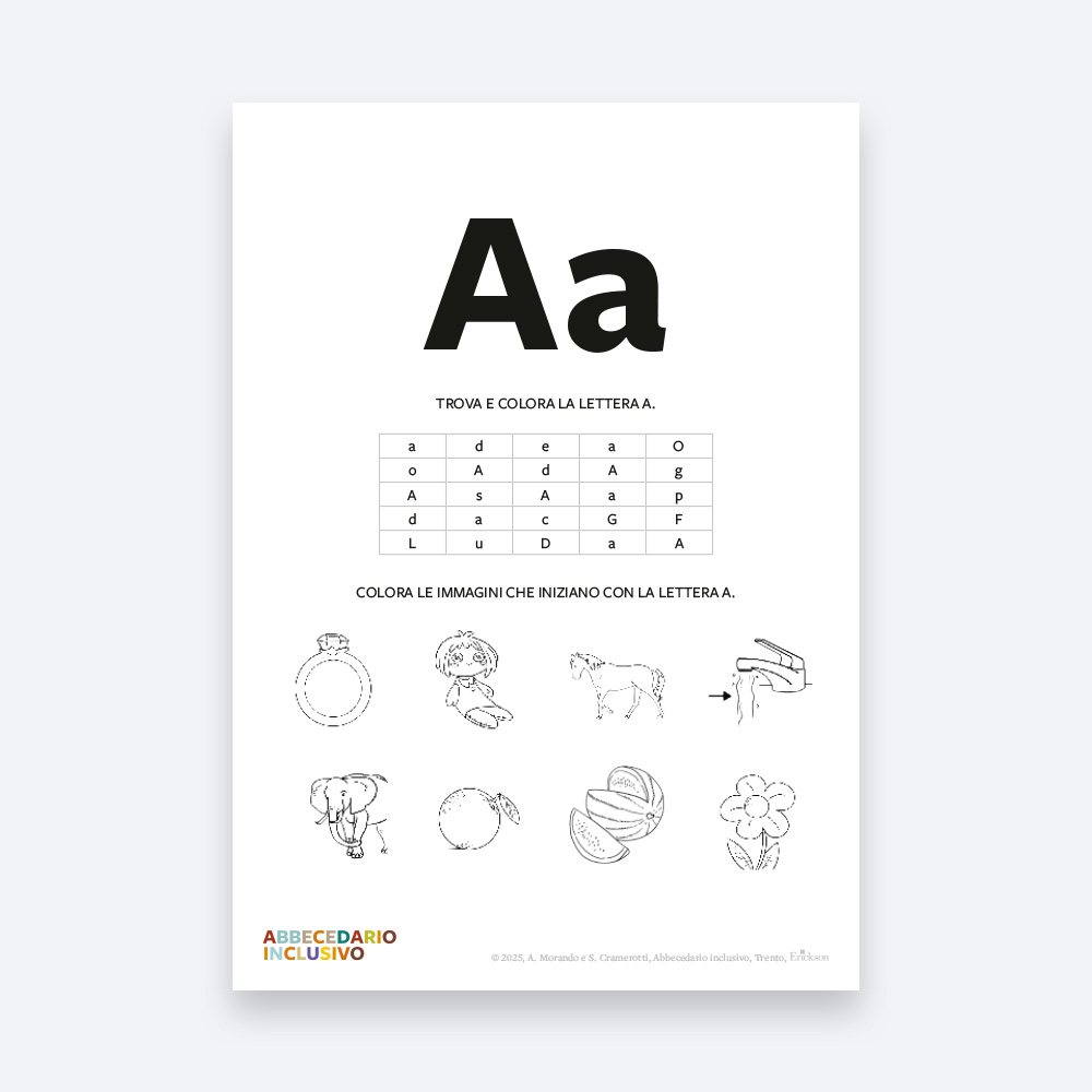 In line with the UDL (Universal Design for Learning) approach, that recognises different learning approaches as a natural and valuable aspect of human diversity, The Inclusive ABC Book introduces the alphabet through a range of different communication styles, and offers a practical pathway rich in activities, worksheets, and materials designed to promote a truly inclusive approach. Each letter of the alphabet is featured in uppercase, lowercase and cursive, linked to a word represented in written, graphic and photographic form, and completed by the corresponding letter in Braille and Italian Sign Language (LIS).